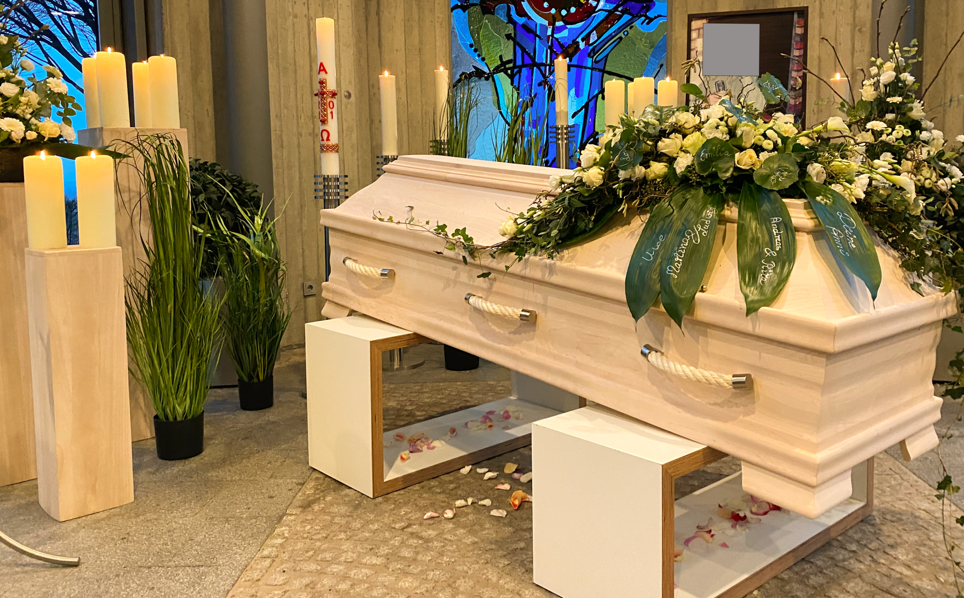 • Beerdigung, Trauerfeier, Friedhof, Altenberge, Dekoration, Friedhofskapelle